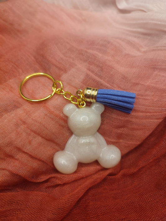 porte clé maman ours blanc nacré avec pompon de couleur résine epoxy