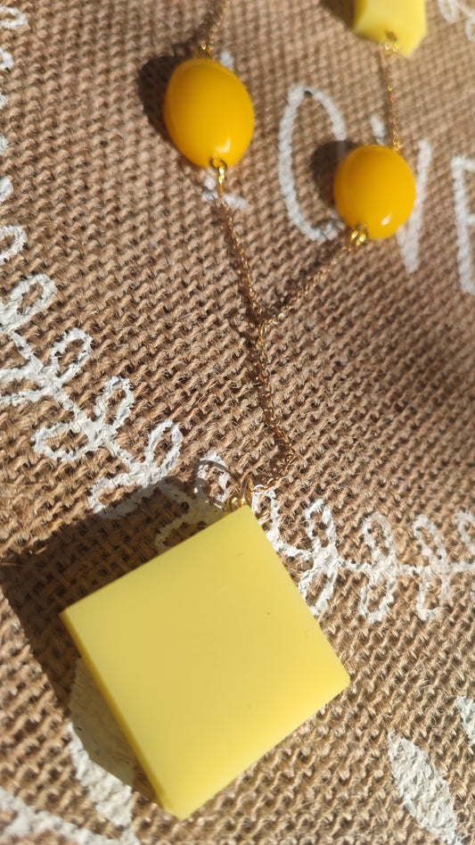 sautoir jaune pastel et ginger en résine epoxy