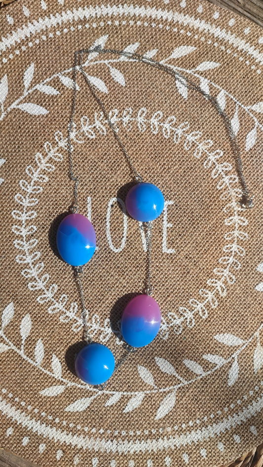 sautoir rose et bleu en résine epoxy