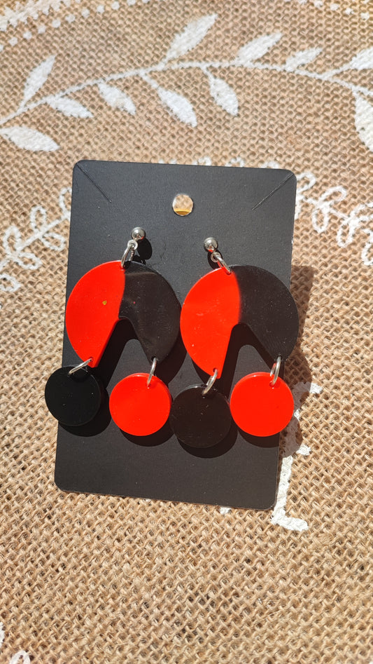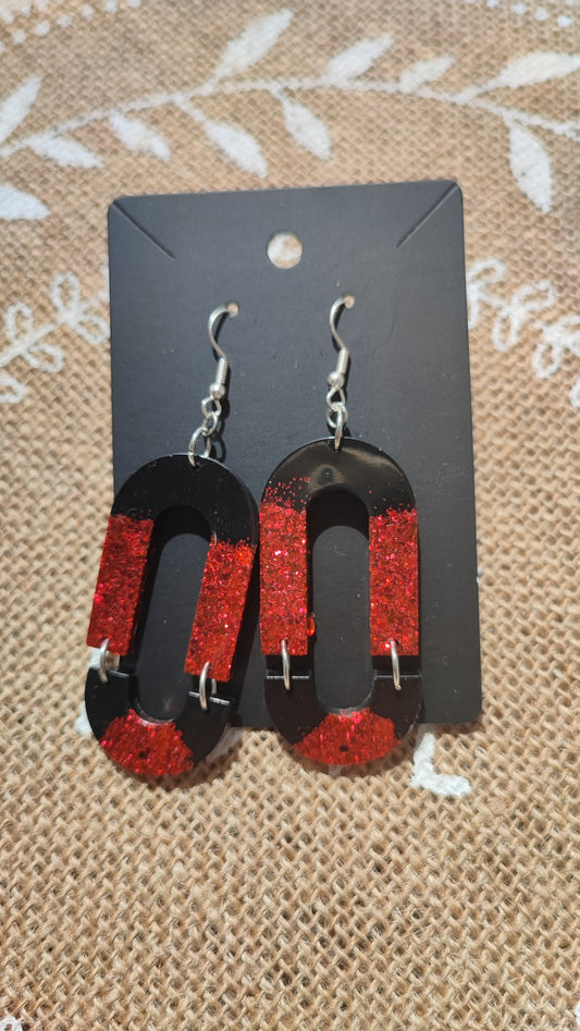 boucles d'oreilles " bâton " noir et rouge pailleté en résine epoxy