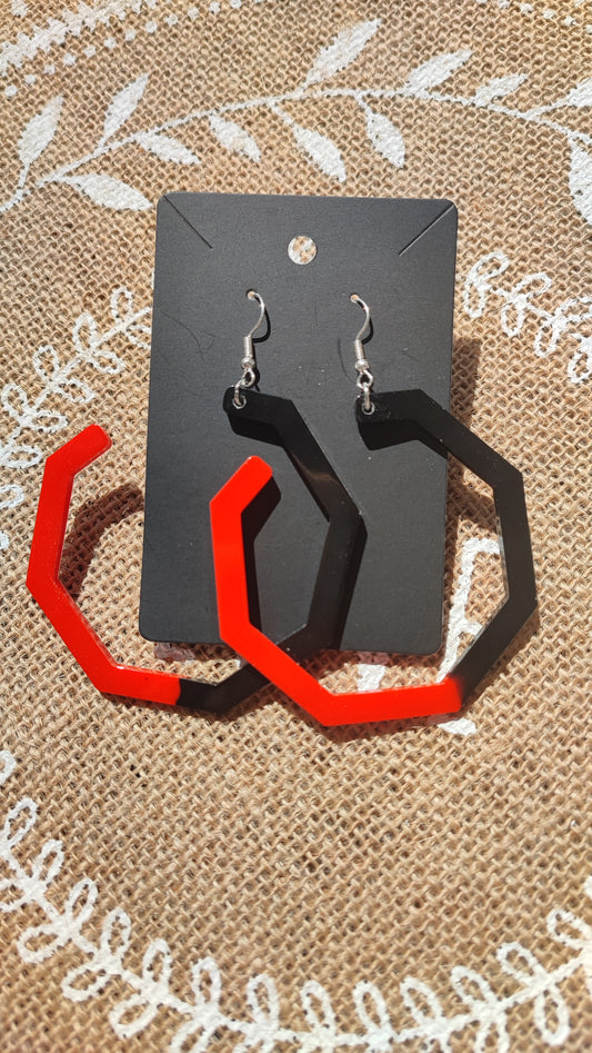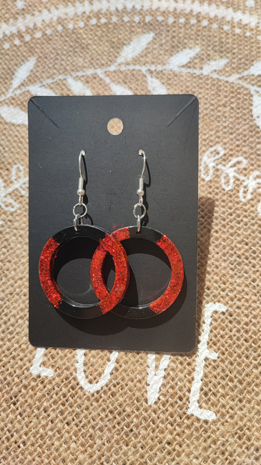 boucles d'oreilles " bâton " noir et rouge pailleté en résine epoxy