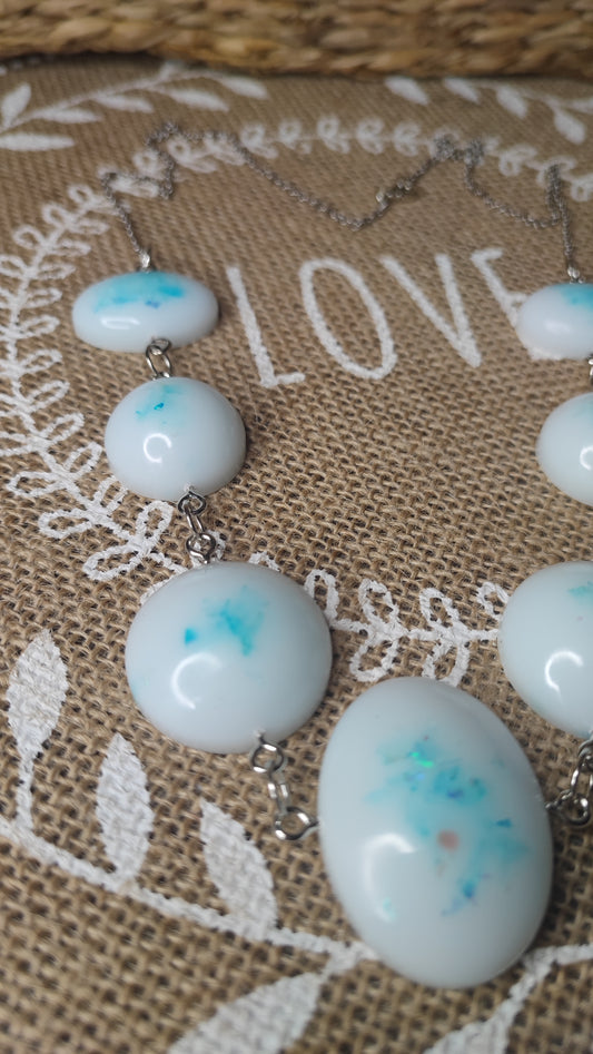 boucles d'oreilles coeur ( grand format ) blanche et bleu opaque en résine epoxy