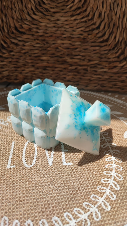 boite à bijoux en résine epoxy blanche et bleu holographique