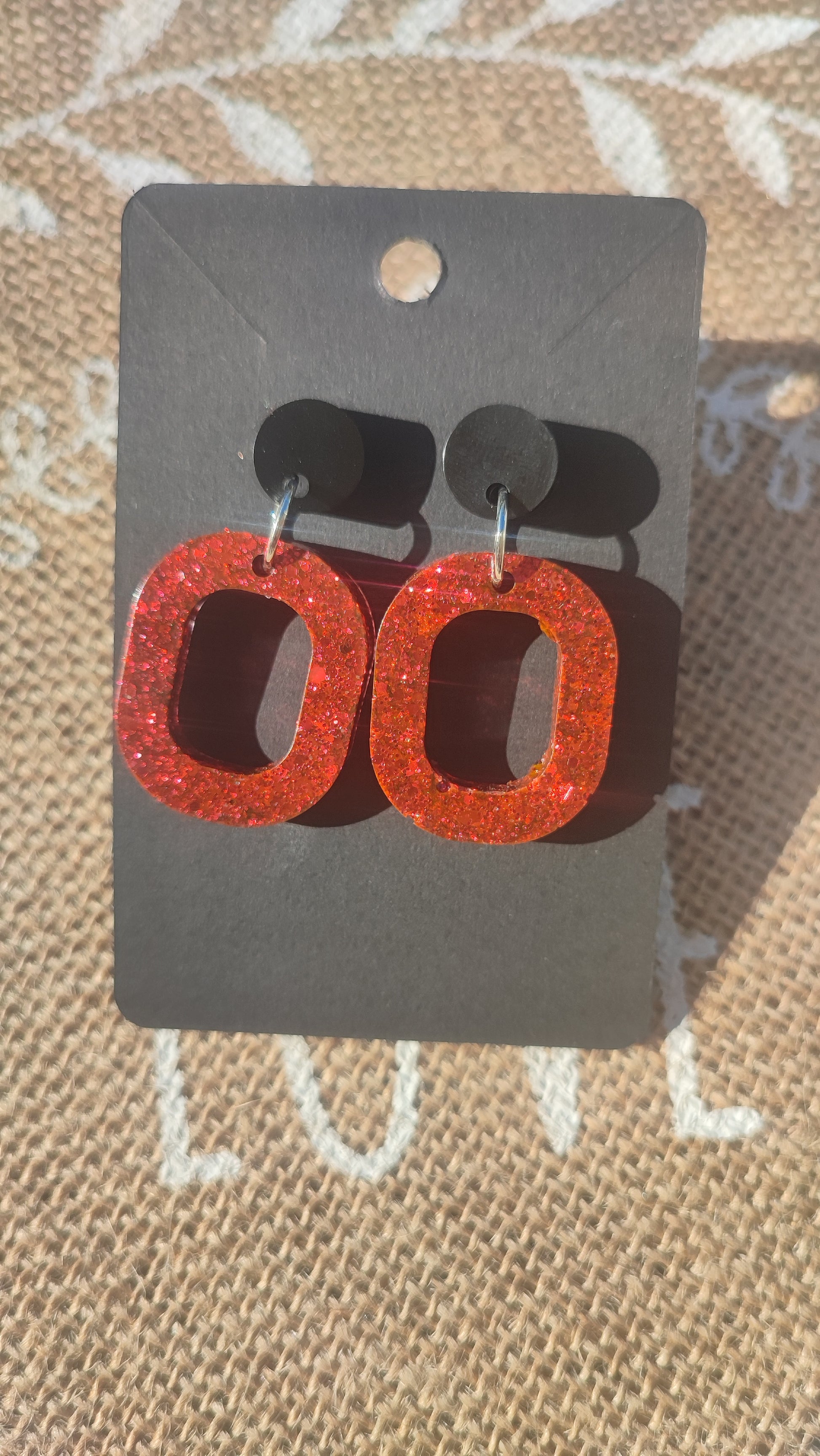 boucles d'oreilles en résine epoxy rouge pailleté et noir