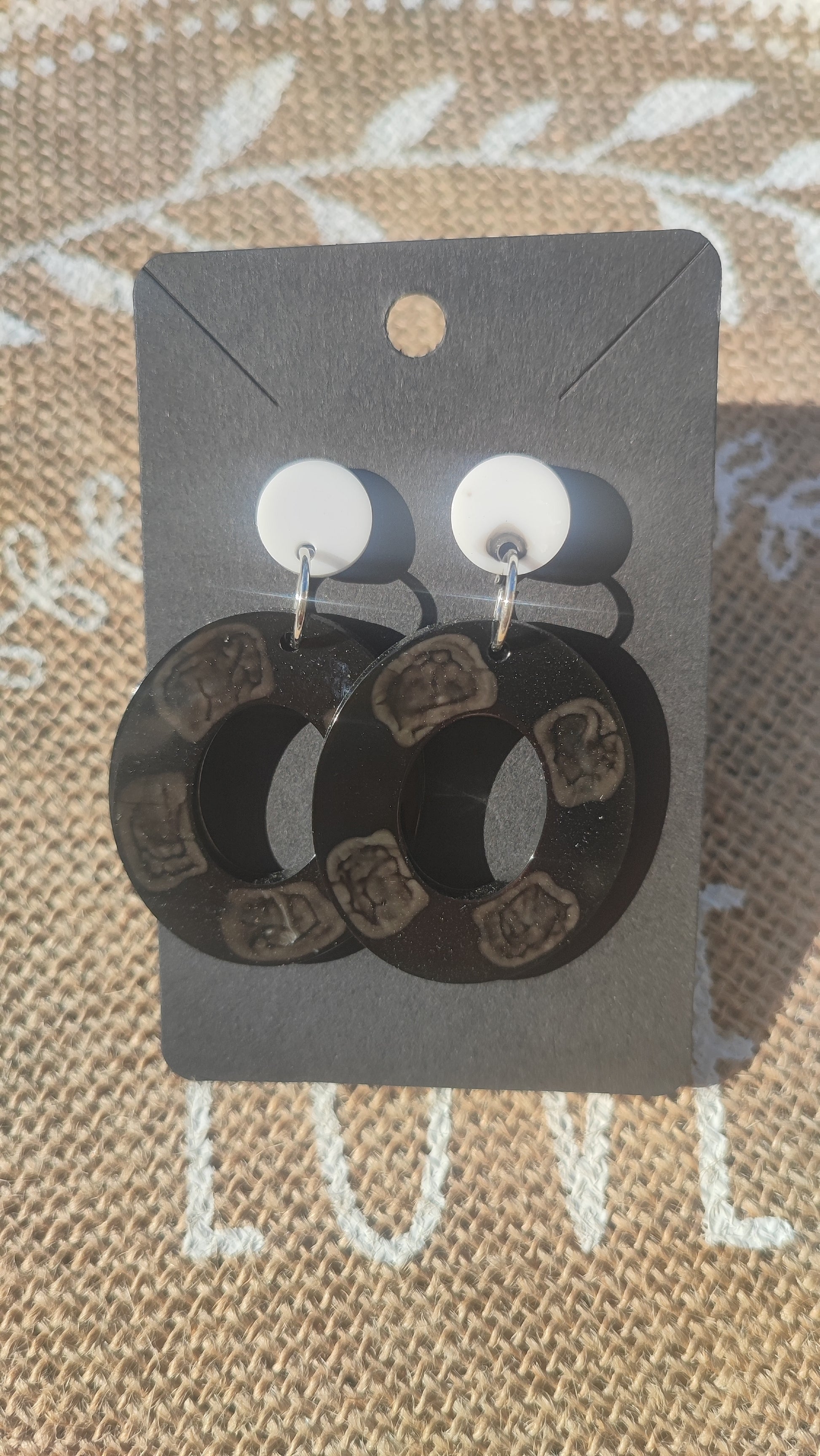 Les boucles d'oreilles, en résine epoxy, dans ce format mesure 5cm de long, 3.2 cm de large et 3 mm d'épaisseur.