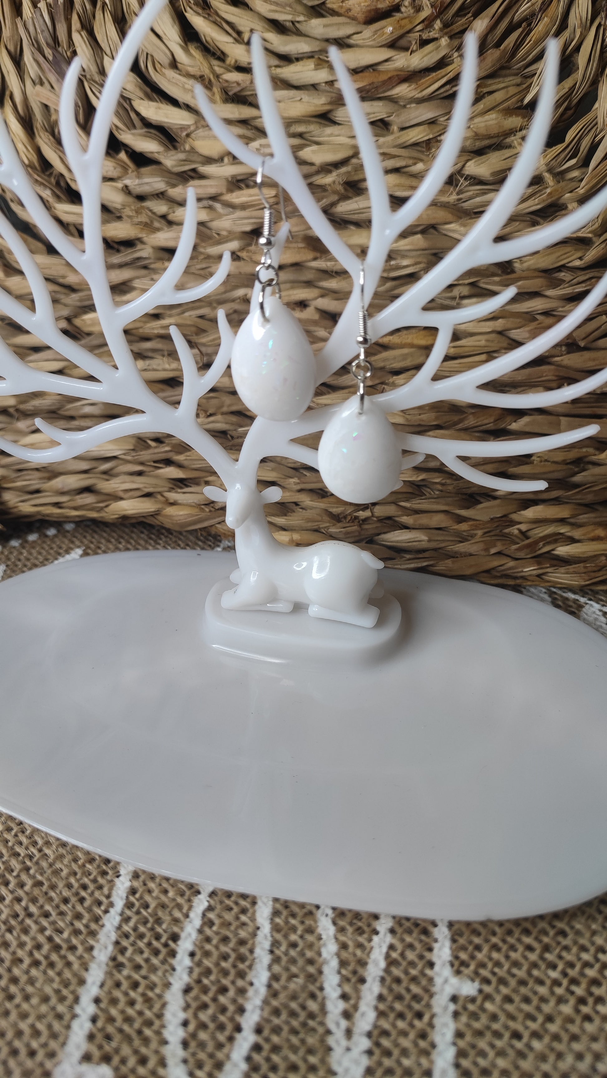 Toutes les boucles d'oreilles disponibles sous ce format sont faites à partir de résine epoxy, les attaches sont en acier inoxydable.