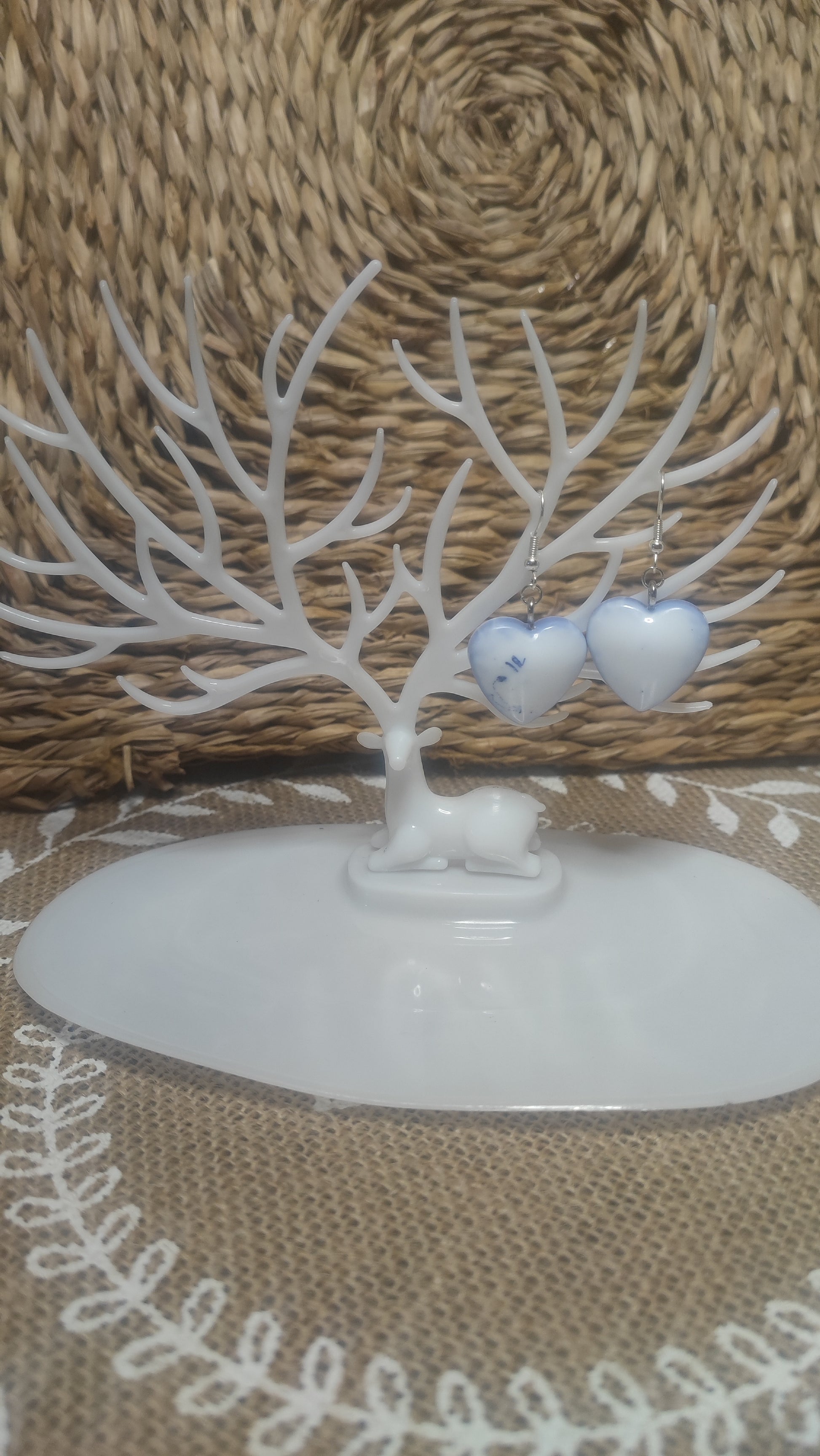 boucles d'oreilles coeur ( grand format ) blanche et bleu opaque en résine epoxy