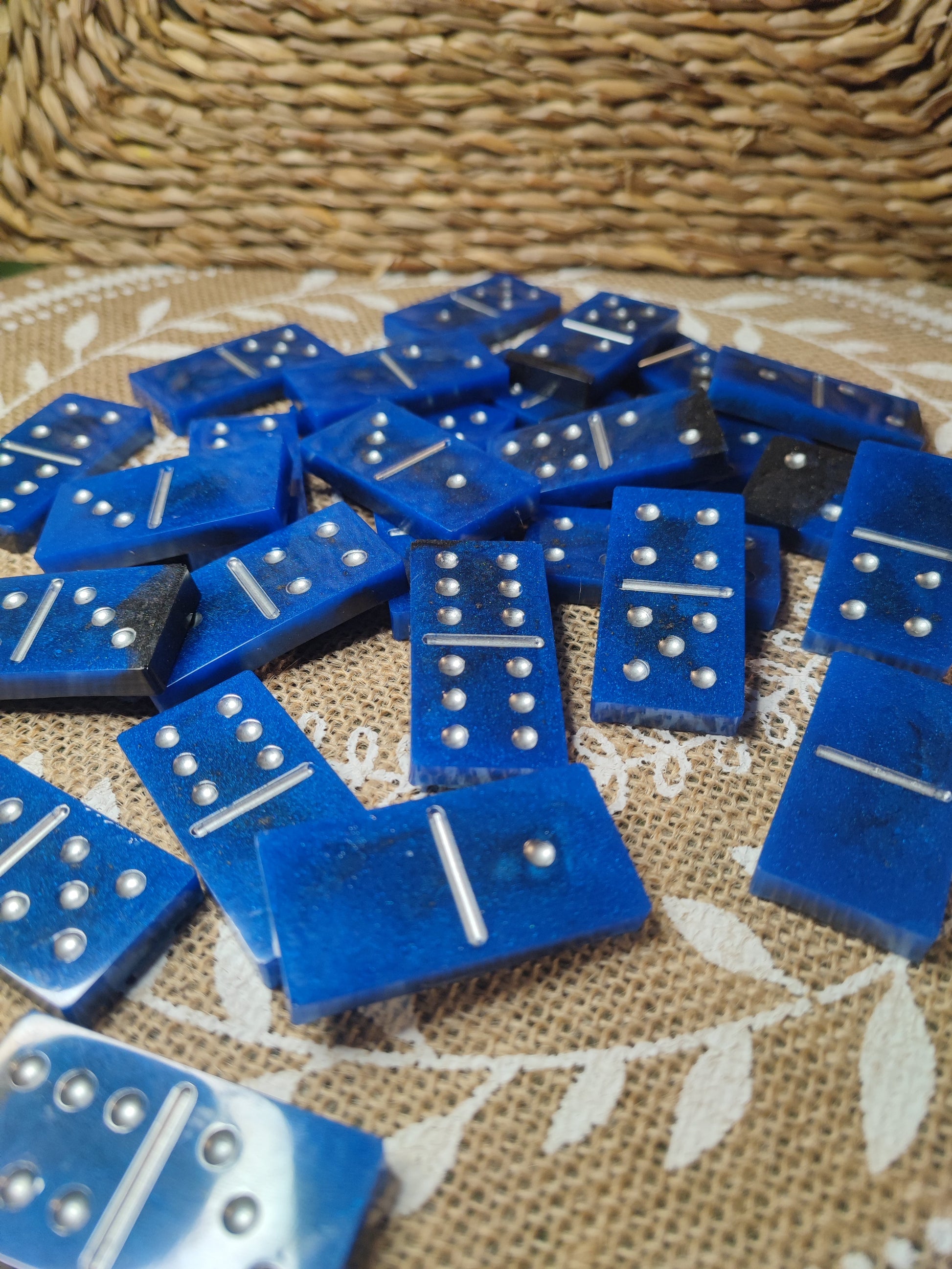 domino bleu et noir résine epoxy