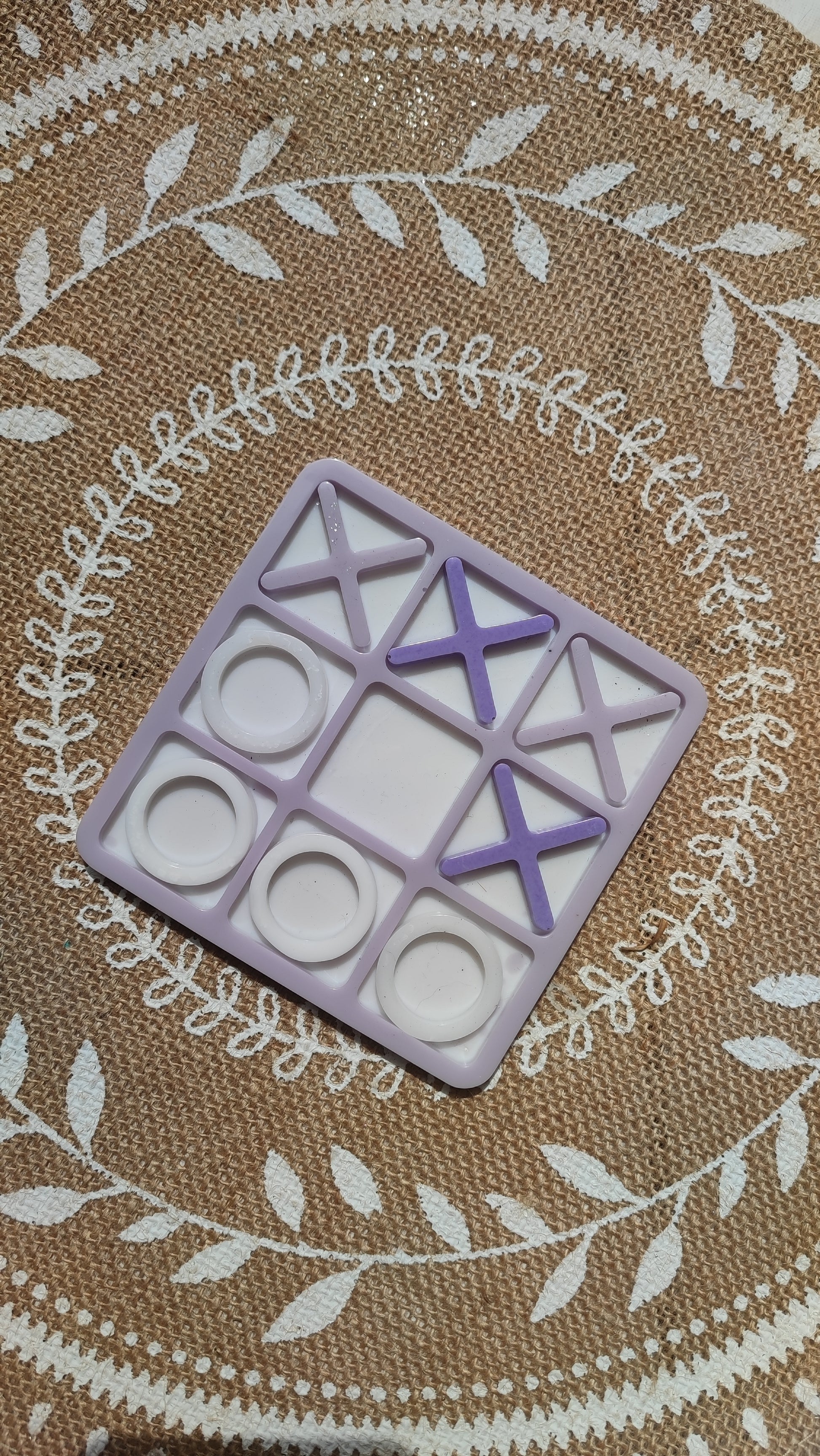 Les jeux de morpions, en résine epoxy, disponibles sous ce format mesure 11 x 11 cm et 0.6 cm d’épaisseur pour le plateau, les ronds et les croix mesurent 2.8 cm pour 0.4 cm d’épaisseur .