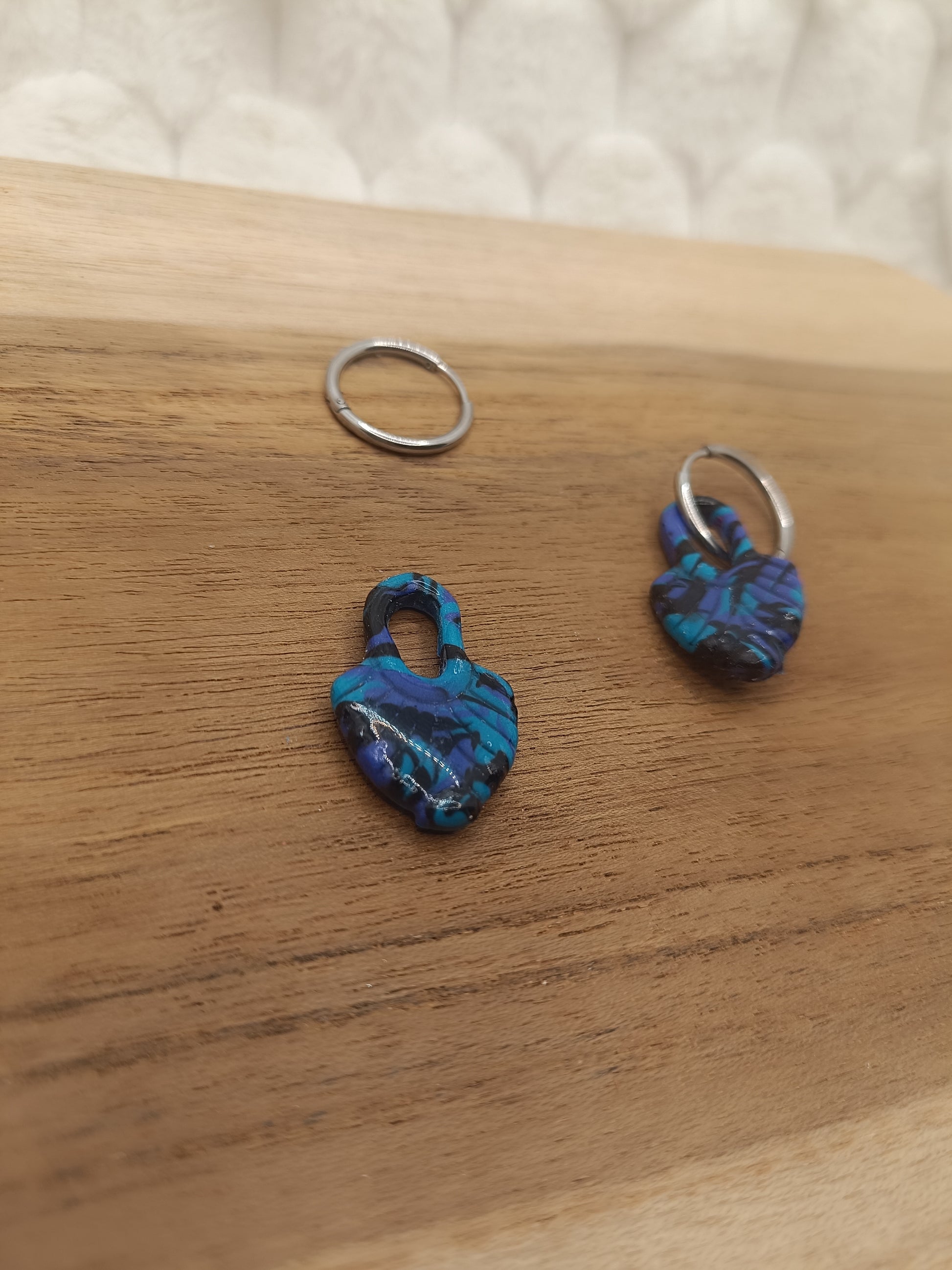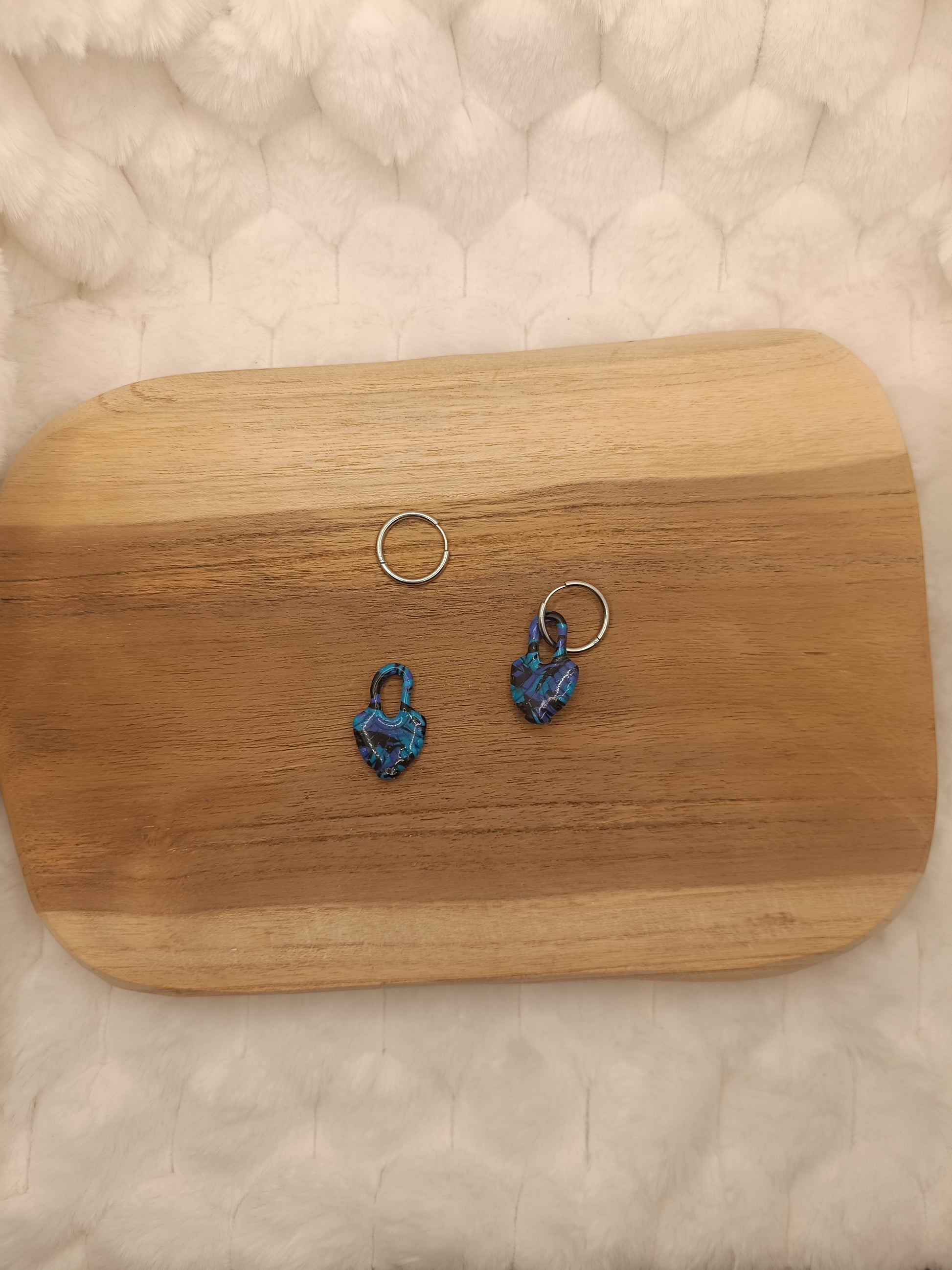 Affirmez votre style avec ces boucles d’oreilles cadenas en pâte polymère, une création artisanale originale et pleine de caractère. Leur forme “petit cadenas” apporte une touche moderne et tendance, tandis que les nuances bleu et vert aux reflets marbrés rappellent l’univers de l’océan ou une galaxie, pour un bijou vraiment unique.