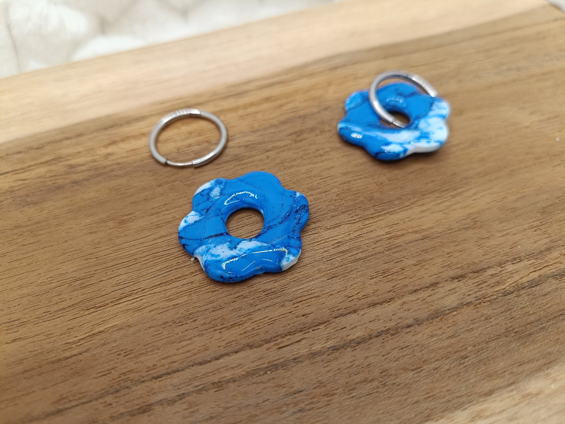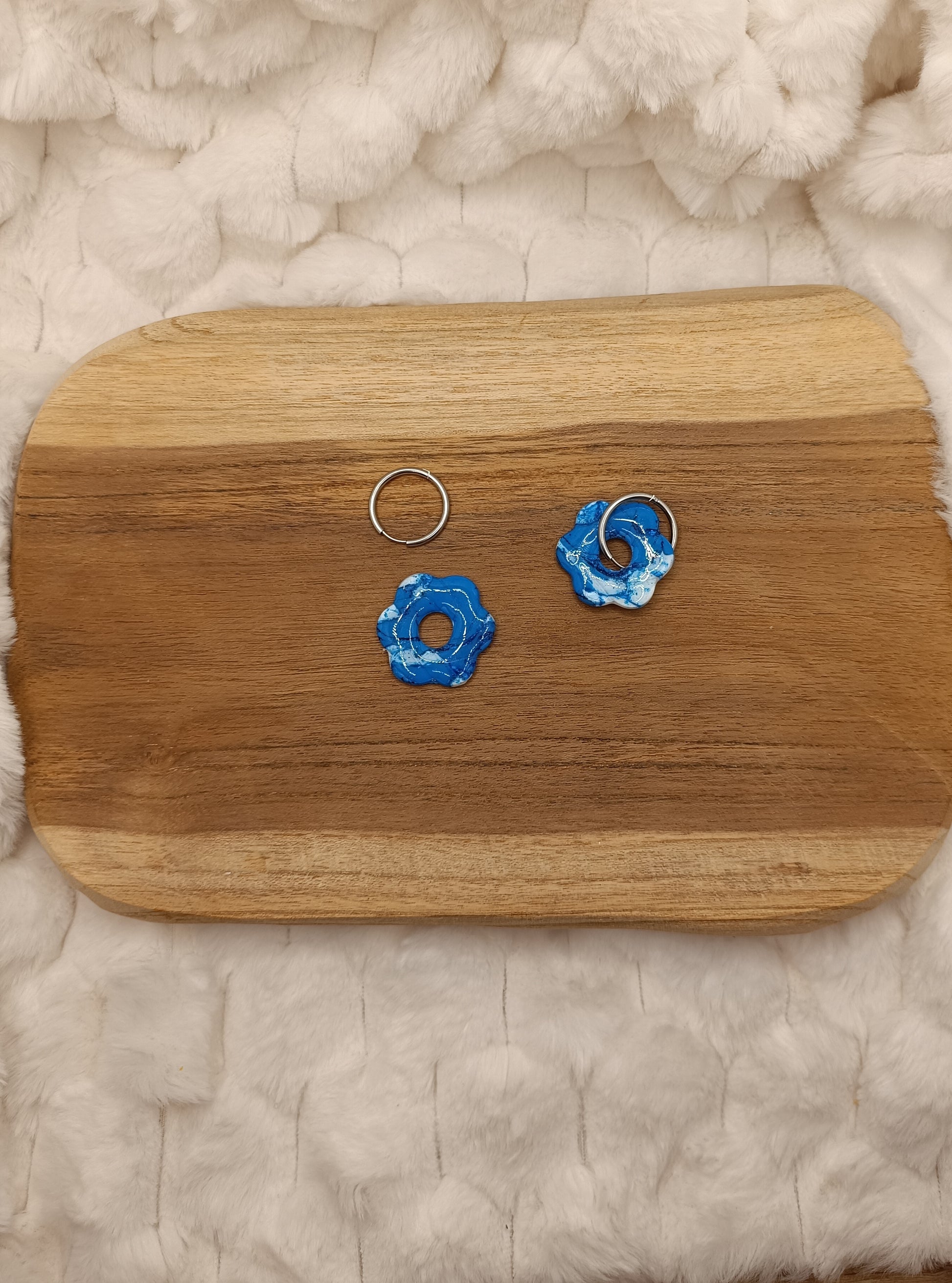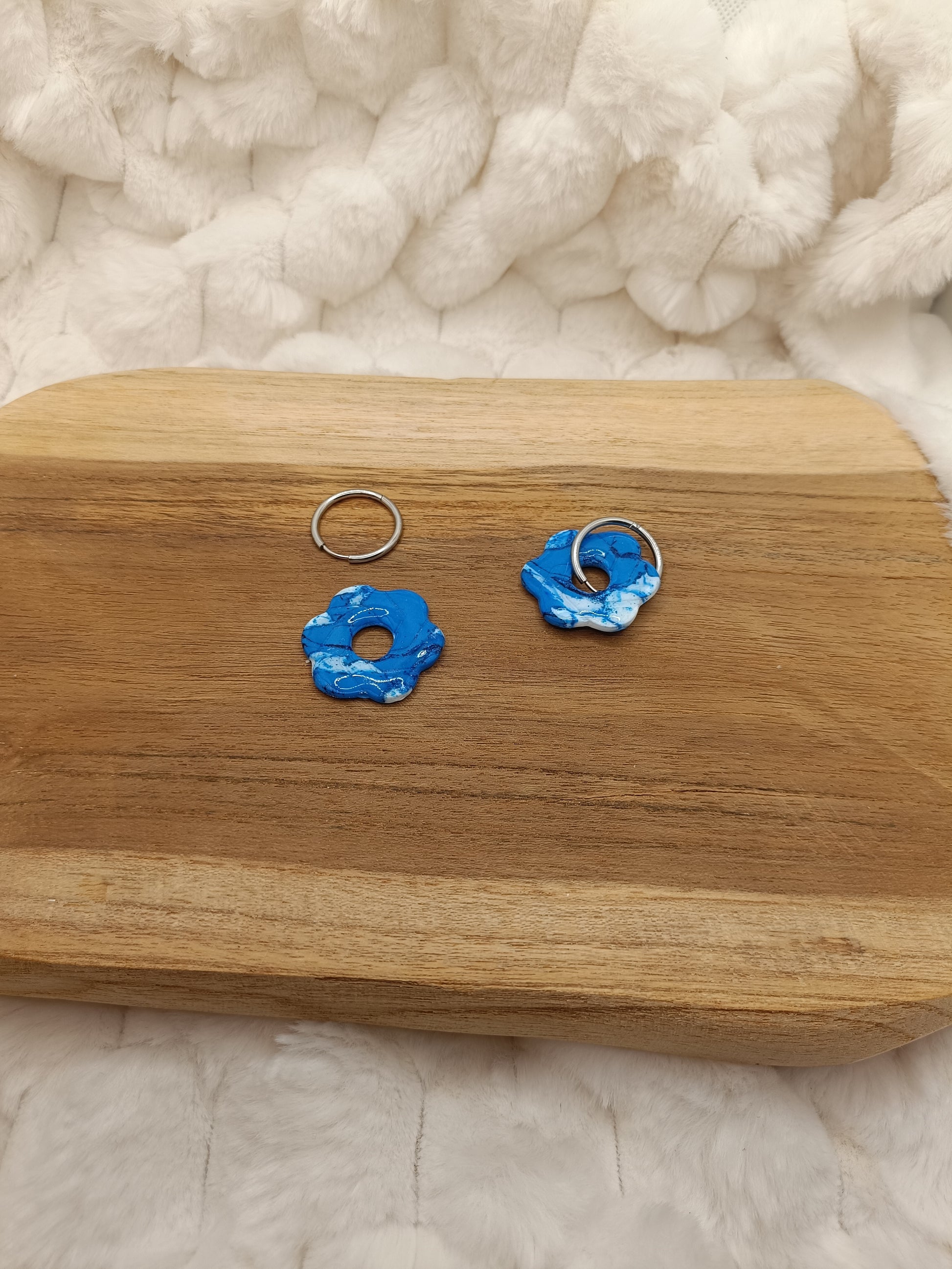 Apporte une touche pétillante et délicate à ta tenue avec ces boucles d’oreilles fleurs en pâte polymère, réalisées entièrement à la main. Leur design floral, mêlant un blanc lumineux à de jolies touches bleues, rappelle un style frais, romantique et original, parfait pour illuminer le visage en toute saison.