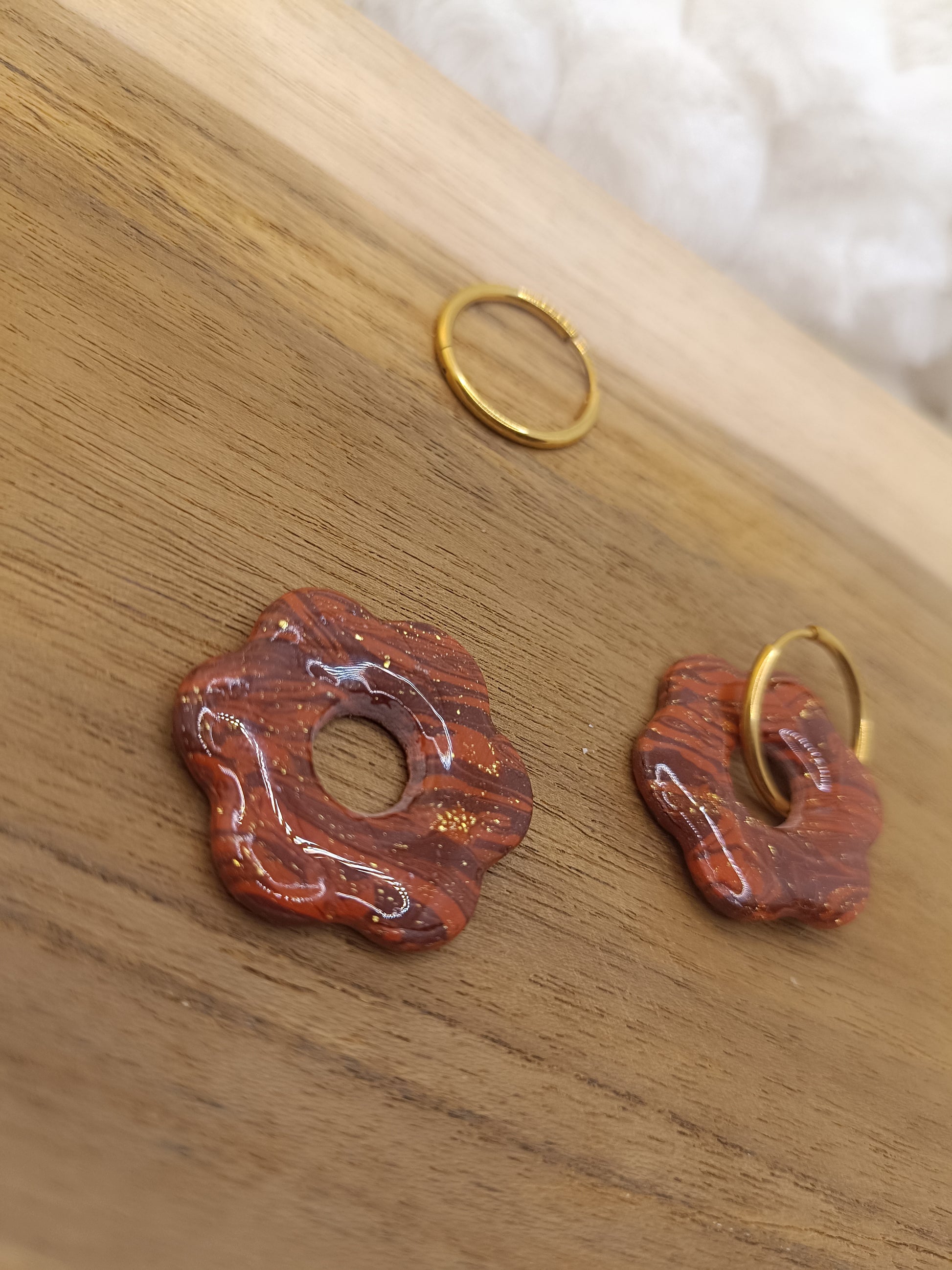 Apporte une touche pétillante et délicate à ta tenue avec ces boucles d’oreilles fleurs en pâte polymère, réalisées entièrement à la main. Leur design floral, mêlant un chocolat et de belles touches de terracota, rappelle un style frais, romantique et original, parfait pour illuminer le visage en toute saison.