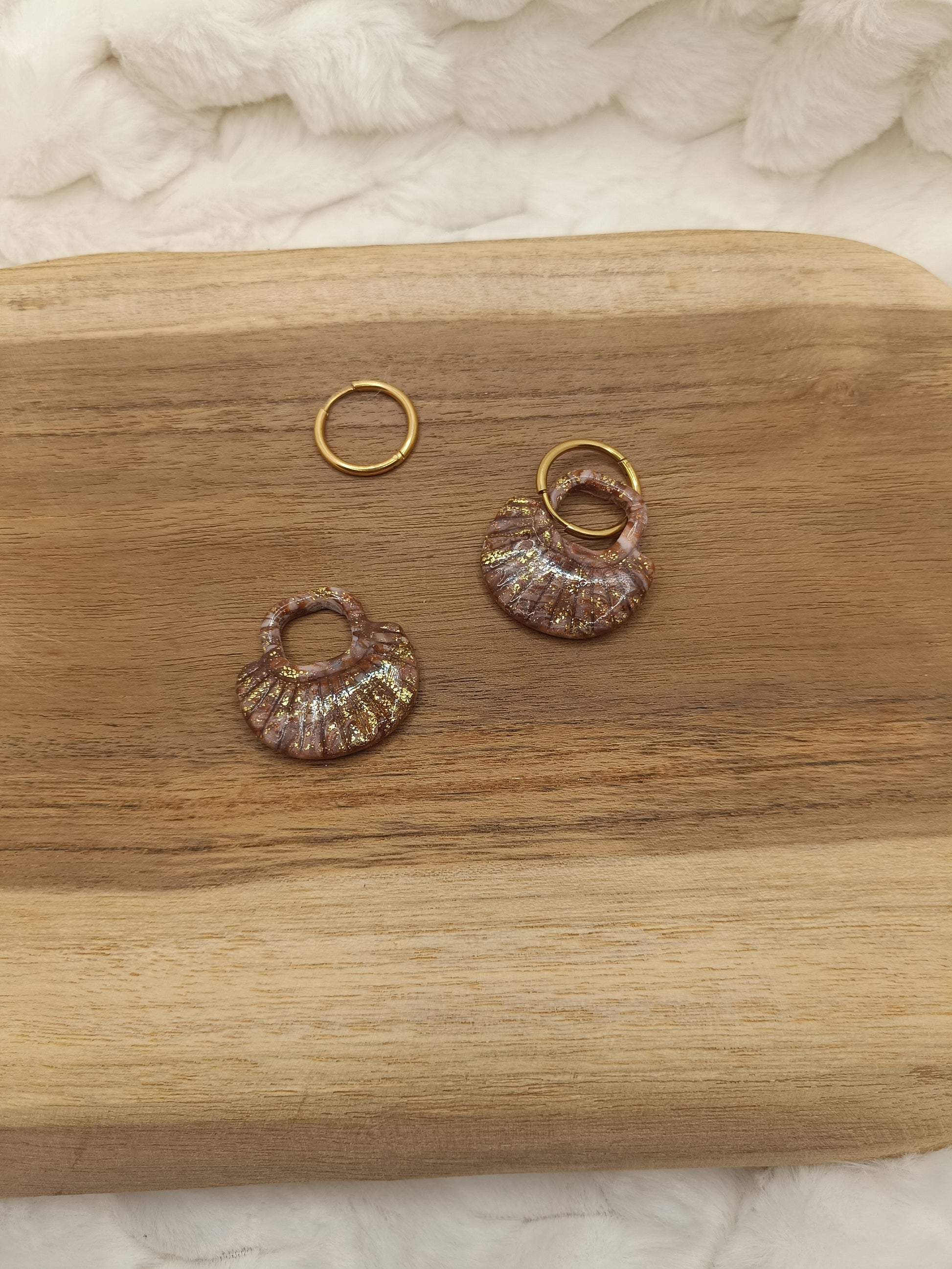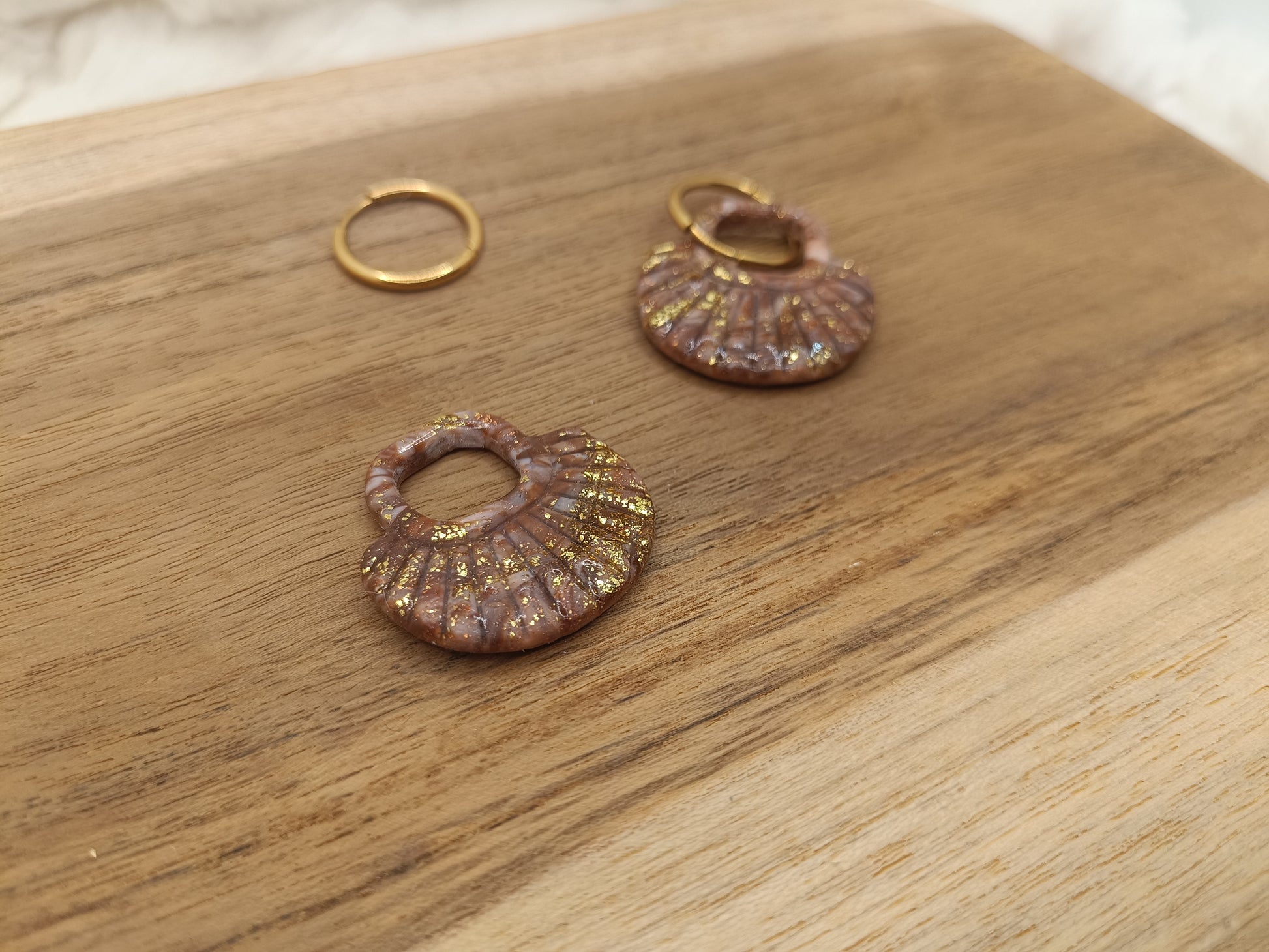 Ajoutez une touche chaleureuse et élégante à ton look avec ces boucles d’oreilles en pâte polymère marron, entièrement faites main. Leur design texturé et arrondi, associé à un superbe motif marbré / effet terrazzo dans des tons chocolat, caramel et brun, donne un rendu unique, moderne et très tendance.