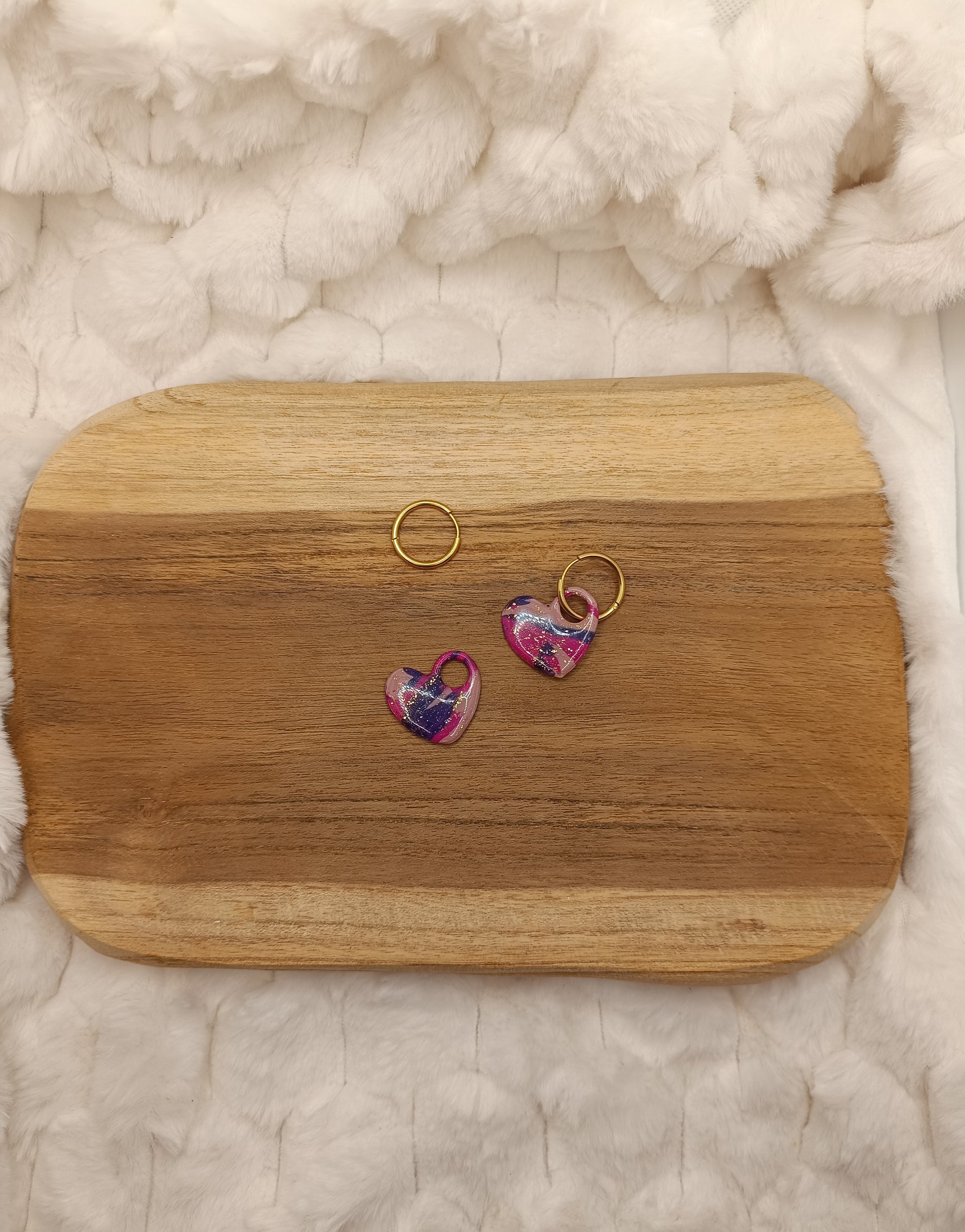 Ajoute une touche d’amour et de couleur à ton look avec ces boucles d’oreilles cœur en pâte polymère, entièrement faites main. Leur petit format et leur design délicat en forme de cœur apportent une note romantique et tendance, parfaite pour illuminer une tenue au quotidien.