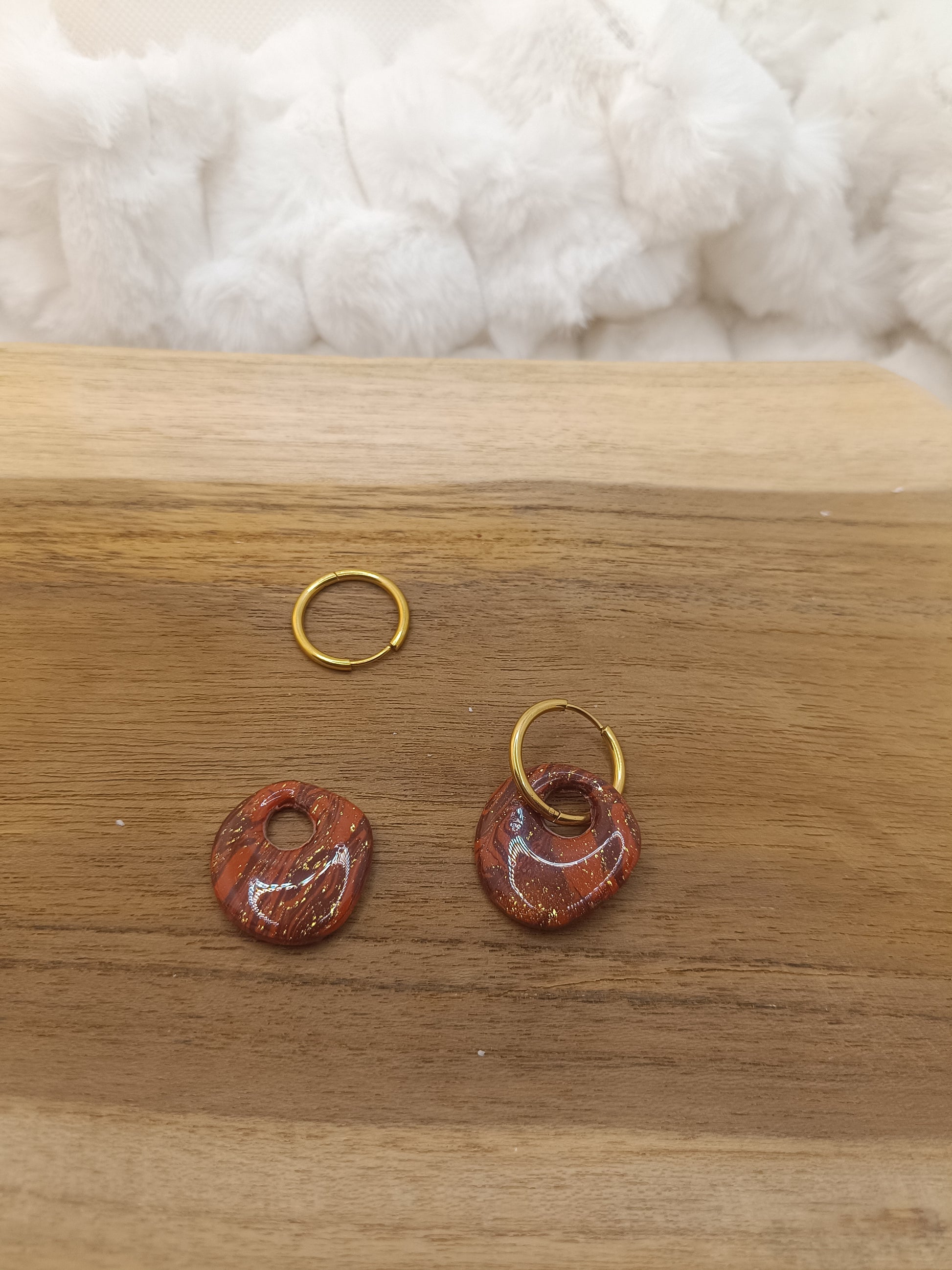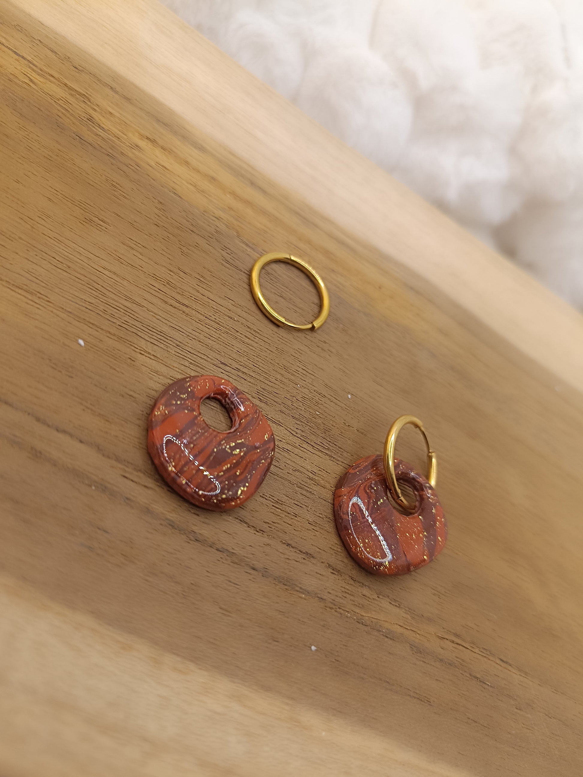 Les tons cuivrés/terracotta créent une harmonie parfaite, idéale pour un style bohème, naturel ou sophistiqué. Montées sur des anneaux dorés, ces boucles d’oreilles sont légères et confortables, parfaites pour être portées au quotidien comme pour une occasion spéciale.