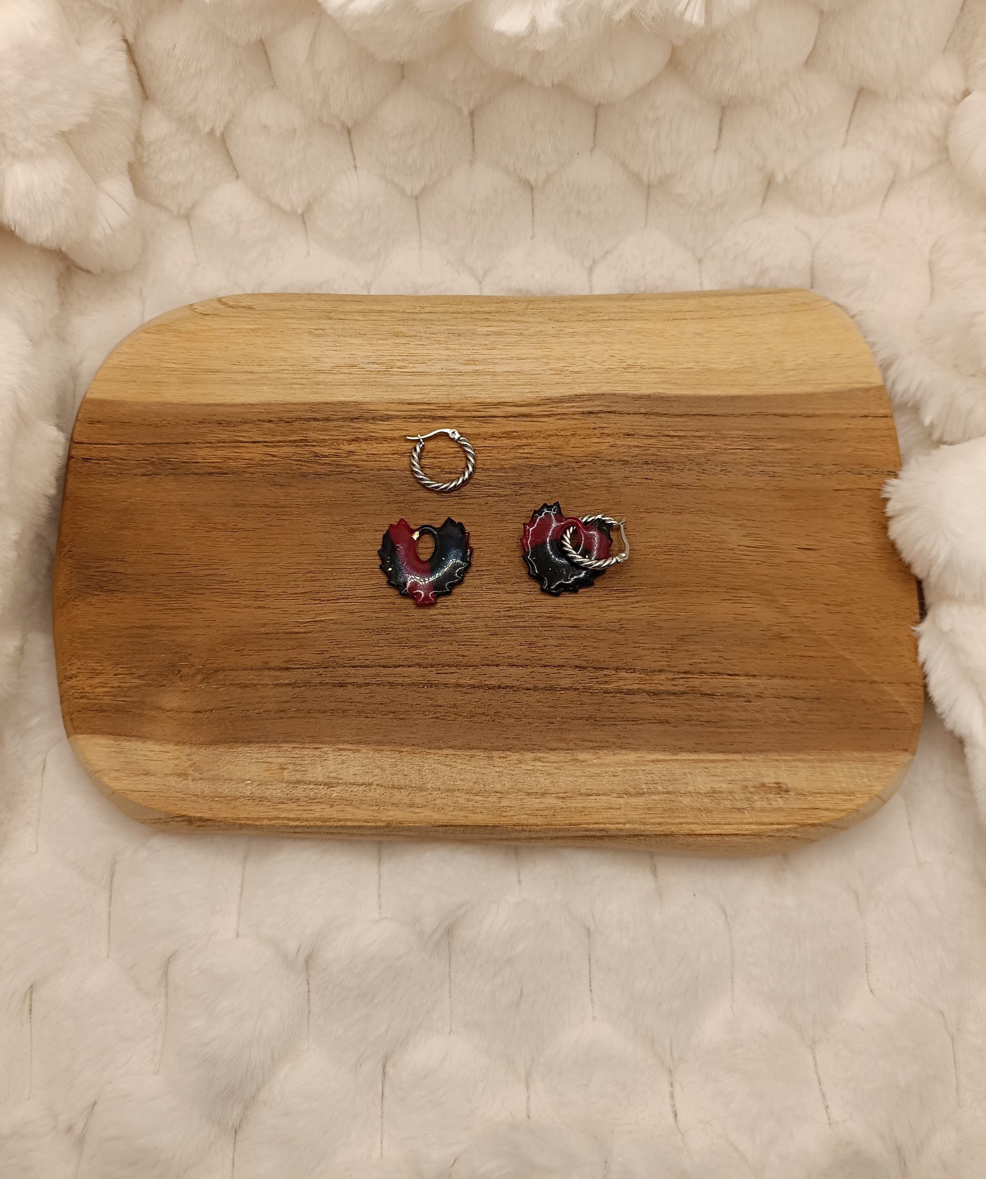 Des pampilles en pâte polymère texturés aux parfait mélange de noir intense et de fuschia translucide, inspirés des coquillages .