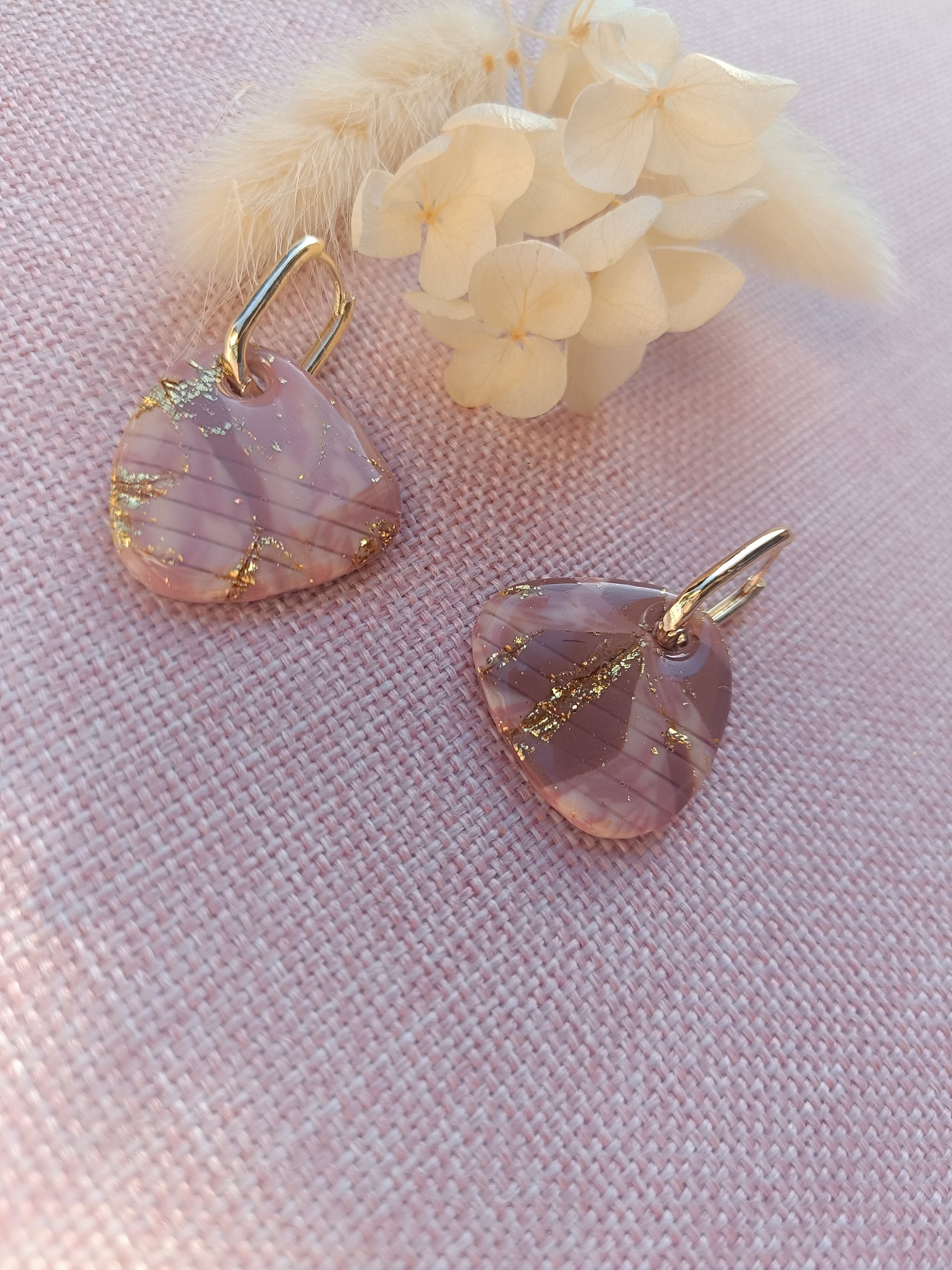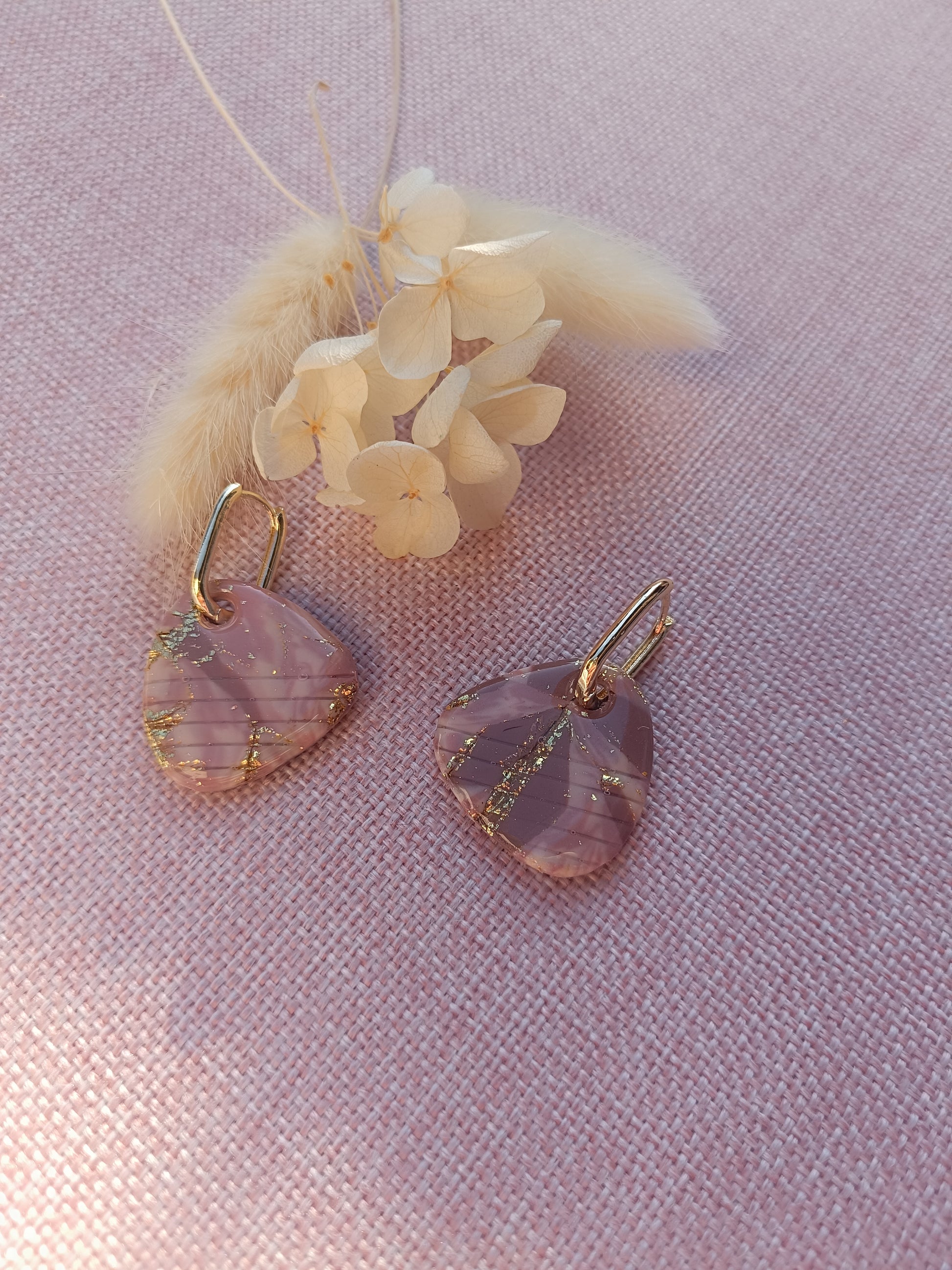 Craquez pour ces boucles d’oreilles en pâte polymère faite avec un sublime mélange de vieux rose, de champagne et de doré , une création artisanale délicate et moderne, entièrement faite main. Leur forme arrondie et minimaliste est sublimée par un joli effet marbré/striée aux reflets légèrement brillants, pour un bijou à la fois discret, original et lumineux.