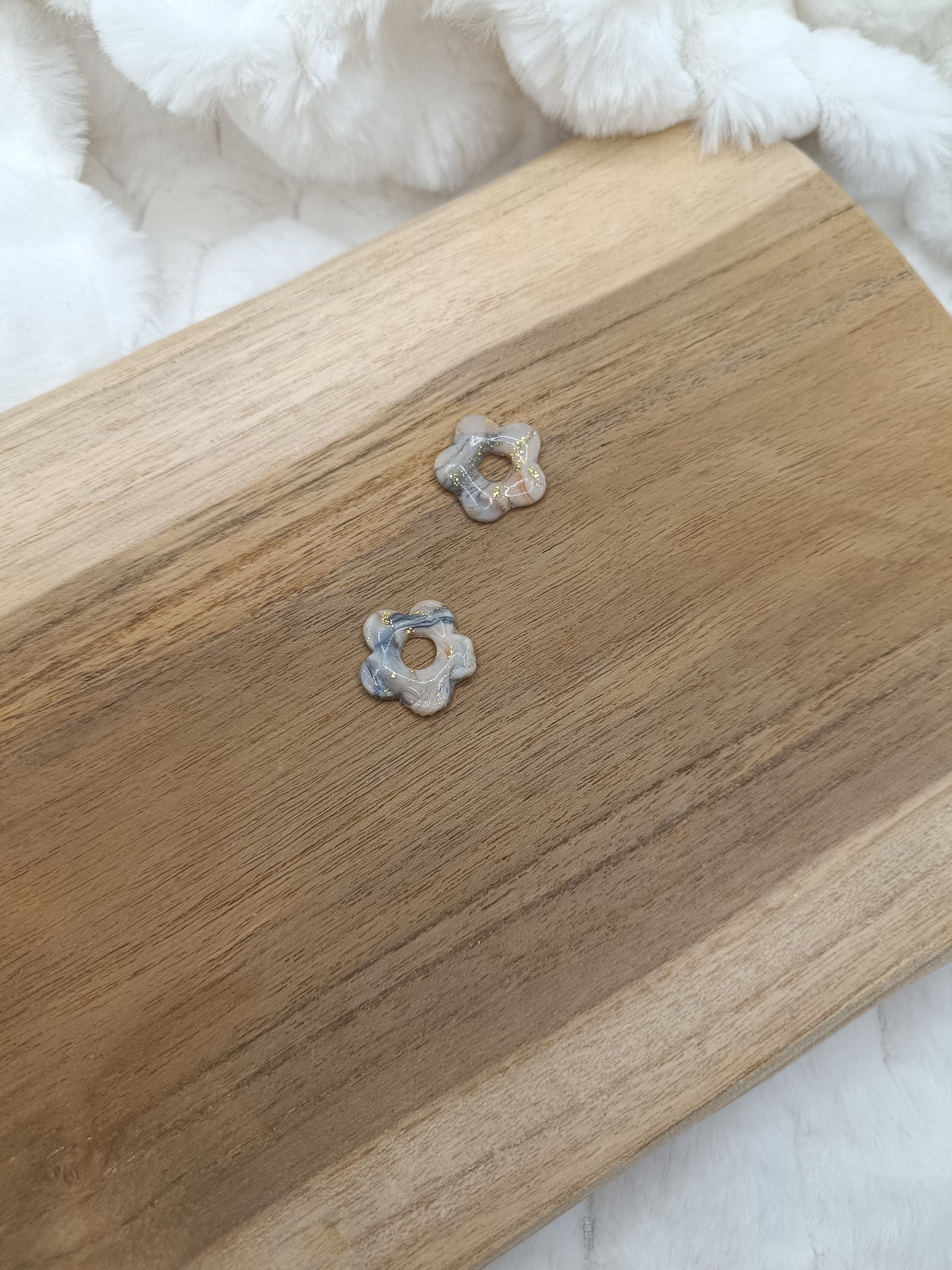 Ajoute une touche de couleur et de douceur à ton style avec ces boucles d’oreilles fleur marbré en pâte polymère, entièrement faites main avec soin. Leur design fleuri et minimaliste apporte une note fraîche et lumineuse, parfaite pour un look du quotidien comme pour une tenue plus habillée.