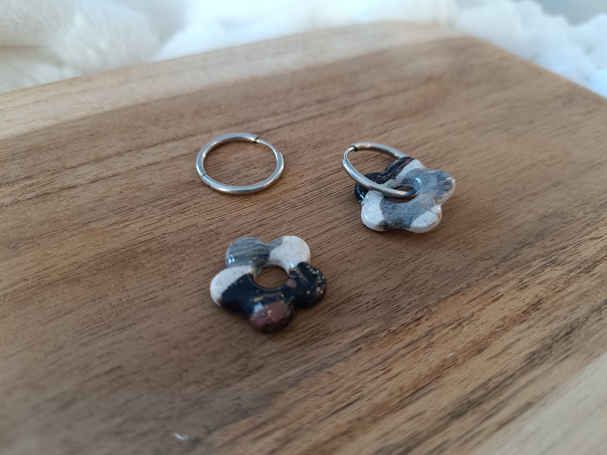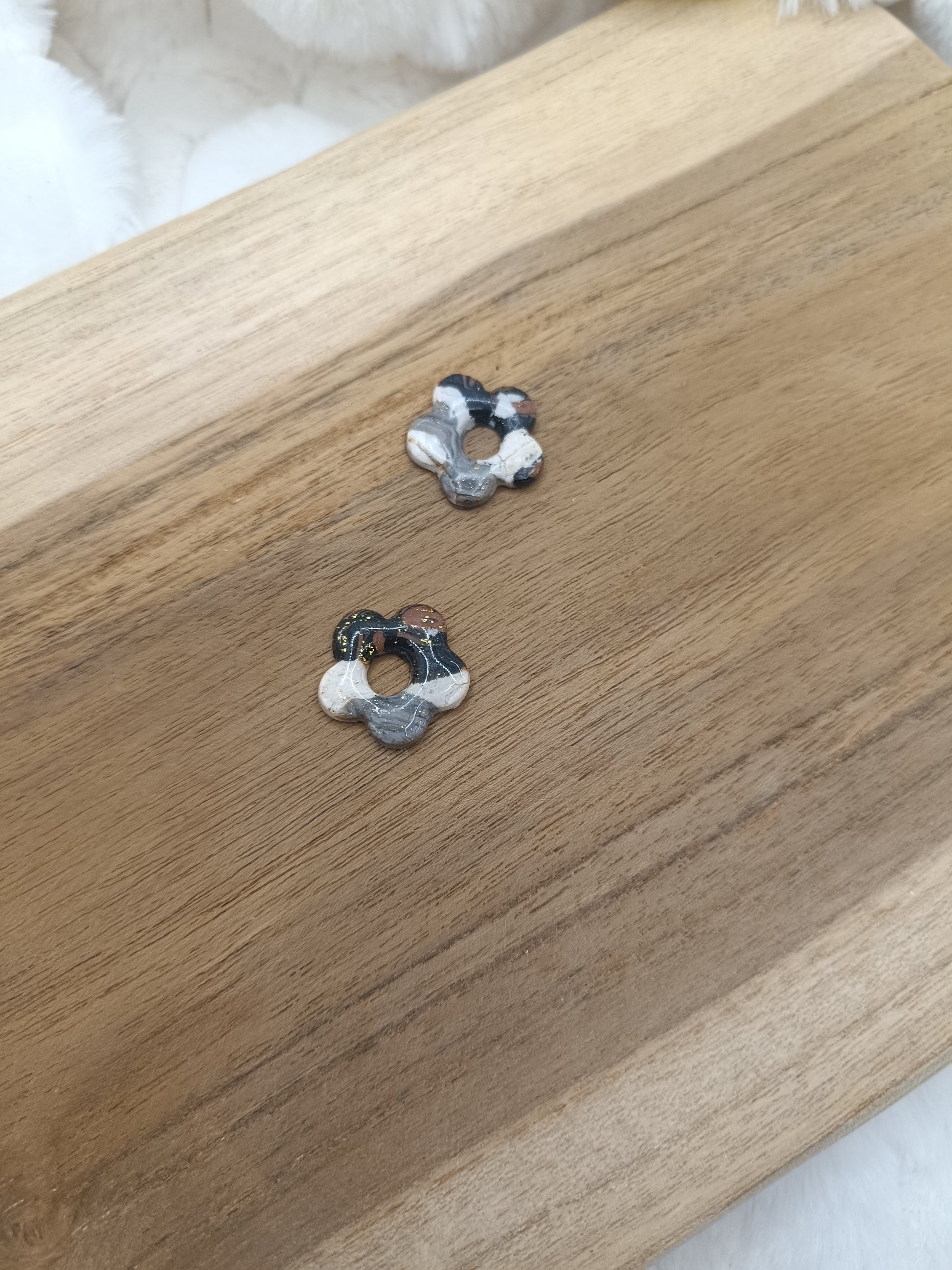Ajoute une touche de couleur et de douceur à ton style avec ces boucles d’oreilles fleur trio de couleur en pâte polymère, entièrement faites main avec soin. Leur design fleuri et minimaliste apporte une note fraîche et lumineuse, parfaite pour un look du quotidien comme pour une tenue plus habillée.
