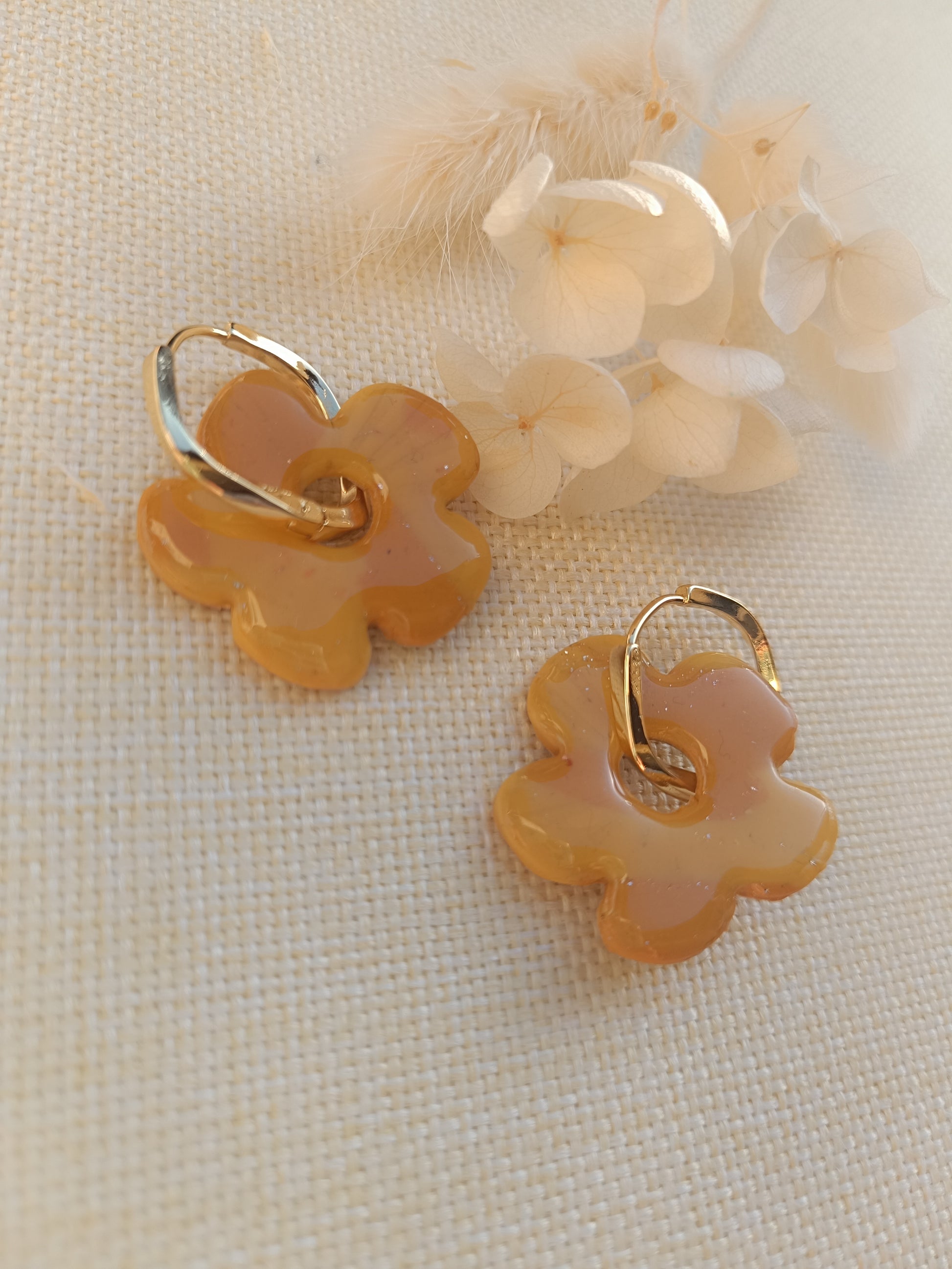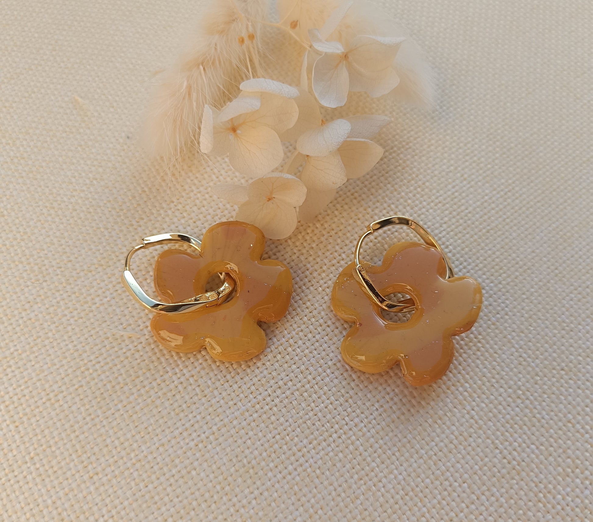 Ajoute une touche de couleur et de douceur à ton style avec ces boucles d'oreilles jaune pastel en pâte polymère, entirérement faite à la main avec soin. Leur design fleuri et minimaliste apporte une note fraiche et lumineuse, parfaite pour un look du quotidien comme pour une tenue plus habillée.